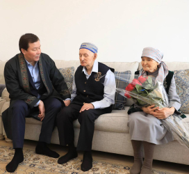Во время встречи глава региона поздравил аксакала с праздником, поинтересовался его состоянием здоровья и поприветствовал его в соответствии с национальной традицией. Также он отметил его огромный вклад в развитие культуры Актюбинской области.